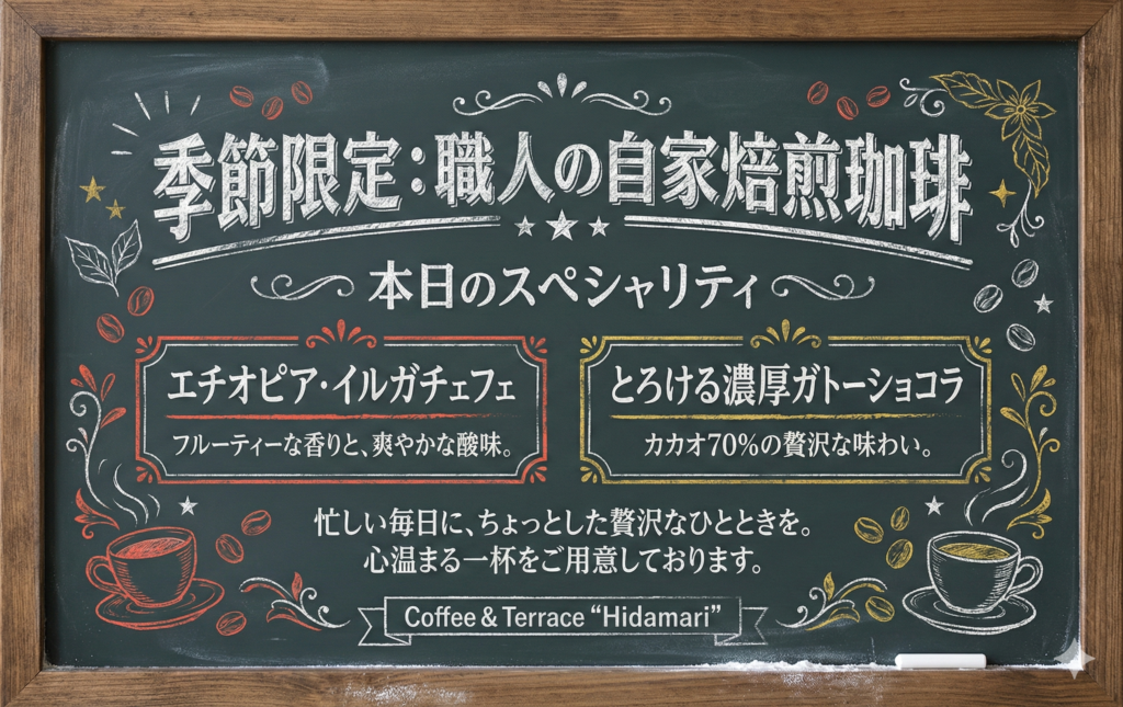 ・メインタイトル:季節限定:職人の自家焙煎珈琲